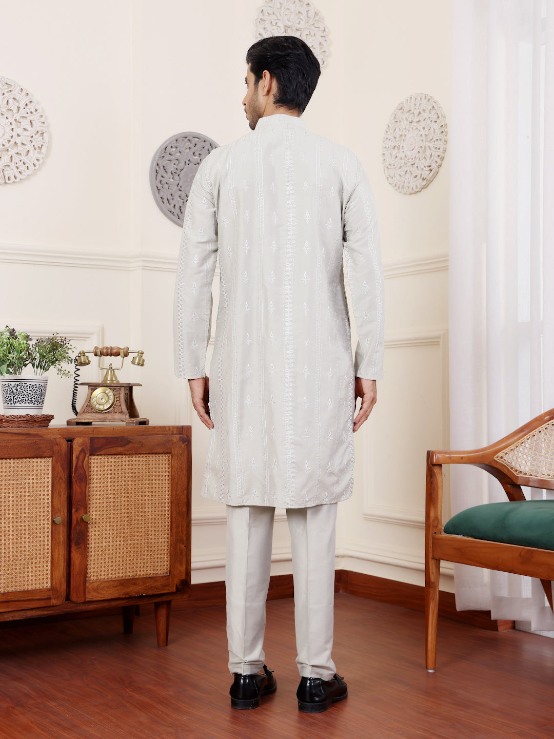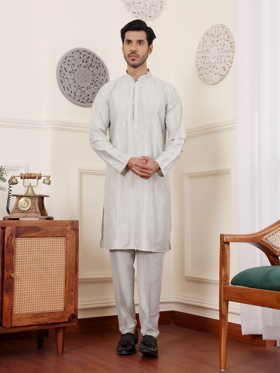 Elegant Light Green Embroidered Kurta Pajama Set for Men