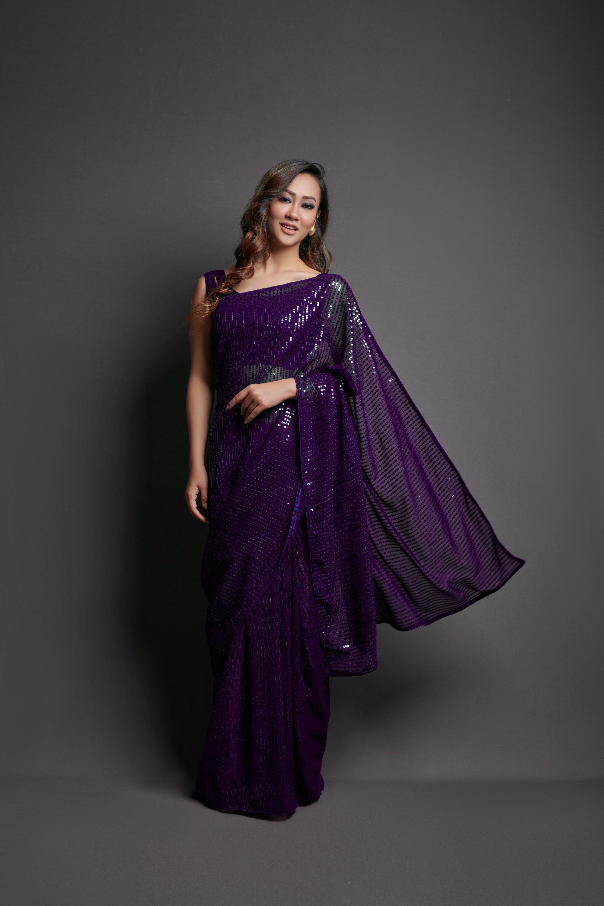 Purple Georgette Saree with Designer Sequins Embroidery & Banglori Silk Blouse