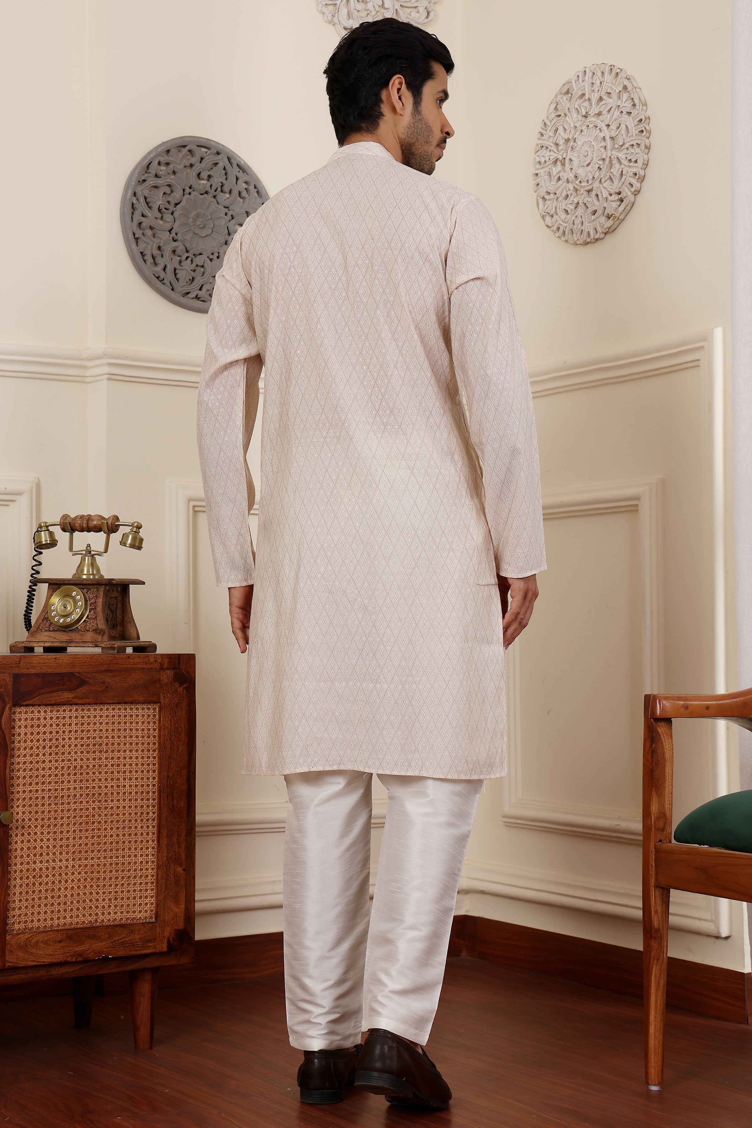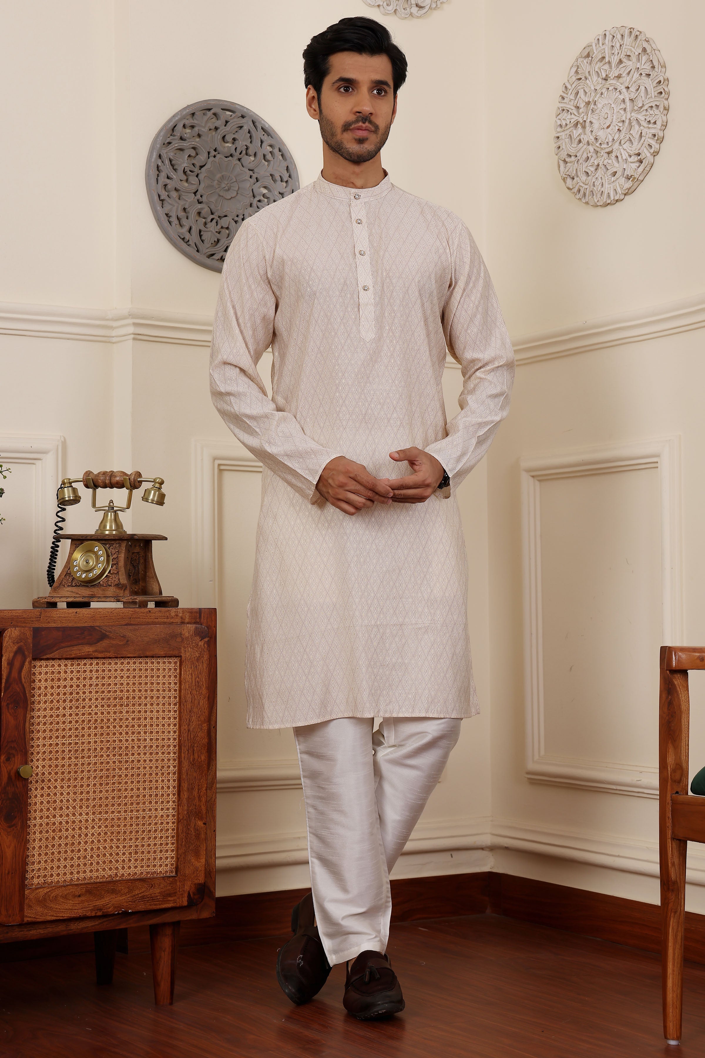 White Kurta Pajama Set – Modal Silk & Art Silk